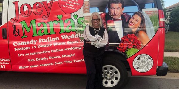 Joey & Maria's Comedy Italian Wedding is an interactive dinner theater show written by Darlyne Franklin. The actors add a healthy dose of improv to the script. Joey & Maria has played throughout the U.S. and overseas. Darlyne says, "It's no secret why everyone loves the quirky brand of nuptial nuttiness that is Joey & Maria. People like to be part of the show. They don't have to sit there quietly. They can drink. They can walk around. They can talk with their date."